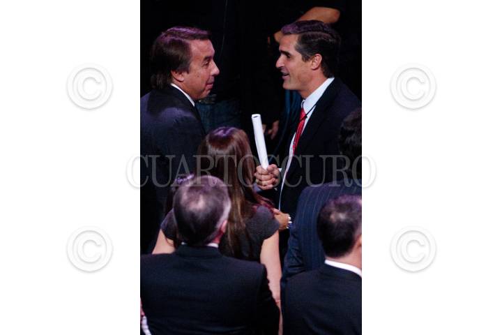 MÉXICO, D.F., 29FEBRERO2012.- Ruben Aguirre, Roberto Gómez Bolaños, "Chespirito" Marco Antonio Regil y Edgar Vivar conviven al finalizar el homenaje que la empresa Televisa le rindió la tarde de hoy en el Auditorio Nacional. FOTO: SARA ORTÍZ /CUARTOSCURO.COM