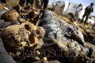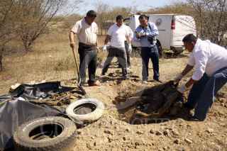 CULIACÁN, SINALOA, 29FEBRERO2012.- En las inmediaciones del poblado Mojolo elementos del ejercito localizaron los restos de 3 cuerpos sin vida en una fosa clandestina, 2 de ellos se encontraban en avanzado estado de putrefacción mientras que el otro ya era puro hueso. El hallazgo se dio gracias a los animales carroñeros que desenterraron los restos, lo que permitió a los soldados encontrar a las víctimas, quienes aún no han sido identificadas. Criminalistas de la procuraduría estatal se encargo de realizar las investigaciones correspondientes. FOTO: RASHIDE FRIAS /CUARTOSCURO.COM