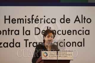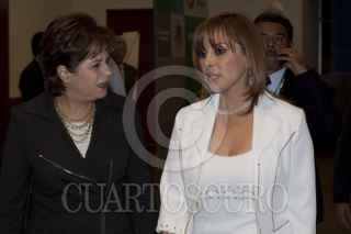 MÉXICO, D.F., 01MARZO2012.- Patricia Espinosa Cantellano, secretaria de Relaciones Exteriores, y Marisela Morales Ibañez, Procuradora General de la República, al finalizar la reunión hemisférica de alto nivel contra la delincuencia organizada transnacional que se realiza en la sede de la cancillería. FOTO: MOISÉS PABLO /CUARTOSCURO.COM