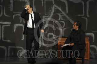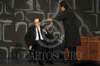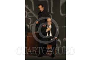 PUEBLA, PUEBLA, 01MARZO2012.- Los actores Rafael Perrín y Odiseo Bichir, durante la puesta en escena de la obra teatral La Dama de Negro en la ciudad de Puebla. FOTO: HILDA RÍOS /CUARTOSCURO.COM