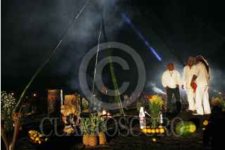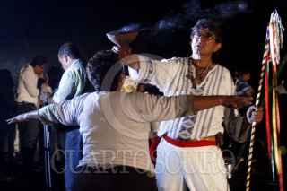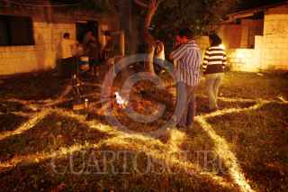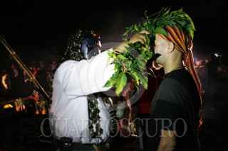 CATEMACO, VERACRUZ, 02MARZO2012.- Durante los primeros minutos de este primer viernes de marzo, decenas de brujos, shamanes y curanderos se reunieron por separado en la ciudad de Catemaco para celebrar su día en donde invocaron a las fuerzas espirituales. Cabe resaltar que los practicantes de la magia negra tuvieron que realizar su celebración de manera clandestina ya que se les prohibió efectuar el ritual a Lucifer y la Santa Muerte. FOTO: FÉLIX MÁRQUEZ/CUARTOSCURO.COM