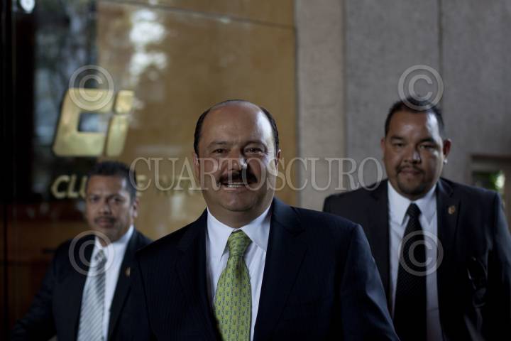 MÉXICO, D.F., 02MARZO2012.- Fernando Toranzo Fernández, gobernador de San Luis, Jorge Herrera Caldera, gobernador de Durango, César Horacio Duarte Jáquez, gobernador de Chihuahua y Oscar Lara Arechiga, presidente de la Comisión de Asuntos Hidráulicos del Congreso de la Unión, durante la segunda reunión extraordinaria de la Comisión de Agua de la Conago. El titular de la comisión del agua, José Luis Luege Tamargo, llegó tarde a la reunión. FOTO: MOISÉS PABLO /CUARTOSCURO.COM