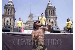 MÉXICO, D.F., 03MARZO2012.- Un hombre baila en el zócalo capitalino en el marco de la Sexta Caminata por la Salud. FOTO: PEDRO ANZA /CUARTOSCURO.COM