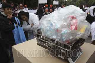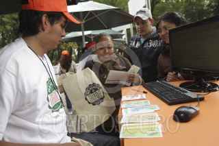 MÉXICO, D.F., 04MARZO2012.-Cambian desperdicios reciclables por verdura fresca y otros productos sustentables en la entrada al Bosque de Chapultepec, donde se lleva a cabo el Mercado del Trueque, organizado por la Secretaría del Medio Ambiente del DF FOTO: JUAN PABLO ZAMORA /CUARTOSCURO.COM
