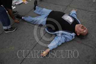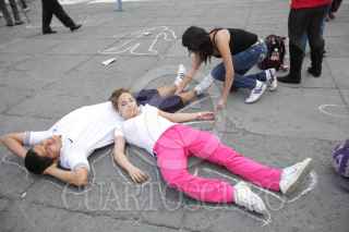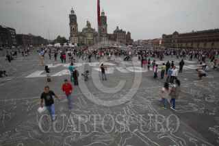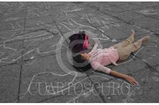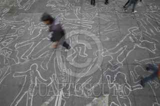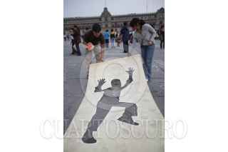MÉXICO, DF 04MARZO2012.- Pintan figuras con gis en la plancha del zócalo, convocados por MORENA Cultura, varias personas dibujaron su silueta en representación de los 60 mil muertos por la "Guerra contra el narcotráfico". FOTO: JUAN PABLO ZAMORA /CUARTOSCURO.COM