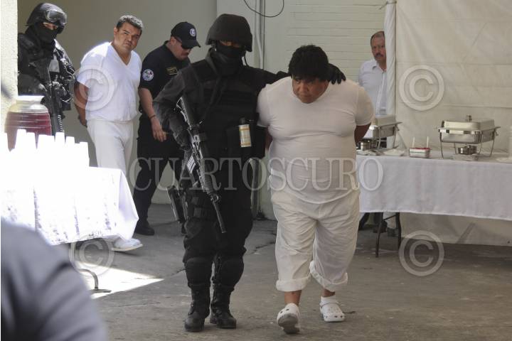 MÉXICO, D.F., 05MARZO2012.- Elementos de la Procuraduria General de Justicia del DF presentaron a tres presuntos integrantes de la organizacion delictiva llamada la mano con ojos los cuales a la hora de su detencion se les encontraron distintas armas de grueso calibre.. FOTO: ENRIQUE ORDÓÑEZ /CUARTOSCURO.COM