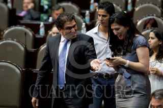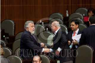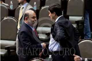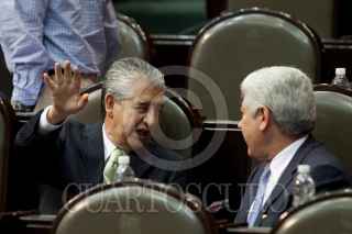 MÉXICO, D.F., 06MARZO2012.- El diputado del PRI, Cesar Augusto Santiago conversa con el diputado del PAN, Francisco Ramírez Acuña, durante la sesión ordinaria en la Cámara de Diputados. FOTO: RODOLFO ANGULO /CUARTOSCURO.COM