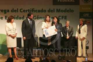 MÉXICO, D.F., 06MARZO2012.- Margarita Zavala Gómez del Campo, presidenta del Consejo Ciudadano Consultivo del DIF, entregó certificados de Modelo de Equidad y Género que otorgó el Instituto Nacional de la Mujeres a trabajadoras de la Comisión Federal de Electricidad. FOTO: SAÚL LÓPEZ /CUARTOSCURO.COM