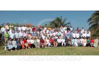 CANCUN, QUINTANA ROO, 28ENERO2005.- Foto del recuerdo de los participantes de la Asamblea General Extraordinaria del grupo Parlamentario del PRI de la LIX Legislatura, que se llevó a cabo en esta ciudad. FOTO: Pedro Argumedo/CUARTOSCURO.COM