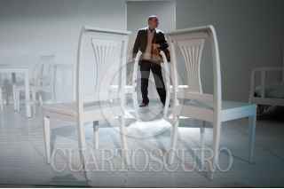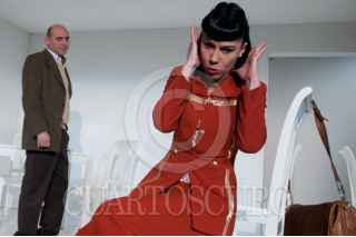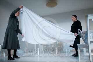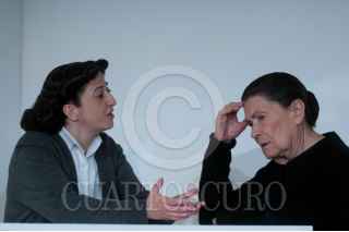 MÉXICO D.F., 09MARZO2012.- La actríz, Emma Dib, interpreta a Marta, quien espera el regreso de su hermano, interpretado por Ana Ofelia Murguia, veinteaños despues sin saber este las atrocidades de ella y su madre, interpretado por Ana Ofelia Murguia. Esto en la puesta en escena de "El Maletendido" de Albert Camus, bajo la dirección de Marta Verduzco y que en su cuarta temporada se le rinde homenaje al músico, Joaquín Gutiérrez Heras quien compuso las tres piezas para arpa y cello exprofeso para este montaje de la Compañia Nacional de Teatro. Las funciones son Jueves y Viernes 20:00hrs Sábado 19 hrs y Domingos 18hrs del 10 de Marzo al 1 de Abril. FOTO: FRANCISCO RODRÍGUEZ /CUARTOSCURO.COM