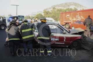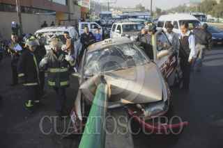 TLANEPANTLA, ESTADO DE MÉXICO 09MARZO2012.- El chofer de un taxi pierde la vida al impactarse con la aguja de incorporación en la Autopista México-Pachuca, a la altura de Periférico en la colonia San Juanico. Según reportes policiacos, una distracción provoco que el chofer de aproximadamente 60 años se impactara y perdiera la vida. FOTO: LUIS CARBAYO /CUARTOSCURO.COM