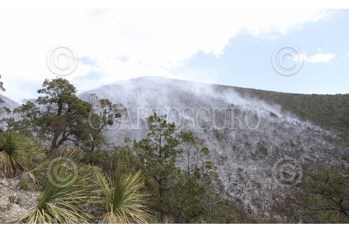 SALTILLO, COAHUILA, 09MARZO2012.- Ante el crecimiento y propagación de los incendios forestales registrados en la zona de la Efigenia en el ejido de San Antonio de las Alazanas y en la Sierra del ejido de Bella Unión, ambos del municipio de Arteaga, brigadistas de Protección Civil, de la Secretaría del Medio Ambiente en Coahuila, de la Comisión Nacional Forestal, bomberos y del Ejército Mexicano, se suman para combatirlos y cerrar el fuego. Este es el séptimo incendio forestal registrado en Coahuila, dando un total de 320 hectáreas de Bosques, matorrales y pastizales. FOTO: KARLA ITZEL RUÍZ /CUARTOSCURO.COM