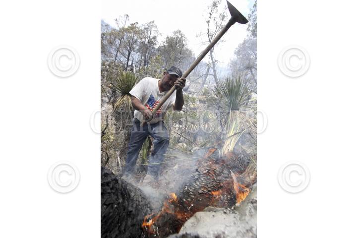 SALTILLO, COAHUILA, 09MARZO2012.- Ante el crecimiento y propagación de los incendios forestales registrados en la zona de la Efigenia en el ejido de San Antonio de las Alazanas y en la Sierra del ejido de Bella Unión, ambos del municipio de Arteaga, brigadistas de Protección Civil, de la Secretaría del Medio Ambiente en Coahuila, de la Comisión Nacional Forestal, bomberos y del Ejército Mexicano, se suman para combatirlos y cerrar el fuego. Este es el séptimo incendio forestal registrado en Coahuila, dando un total de 320 hectáreas de Bosques, matorrales y pastizales. FOTO: KARLA ITZEL RUÍZ /CUARTOSCURO.COM