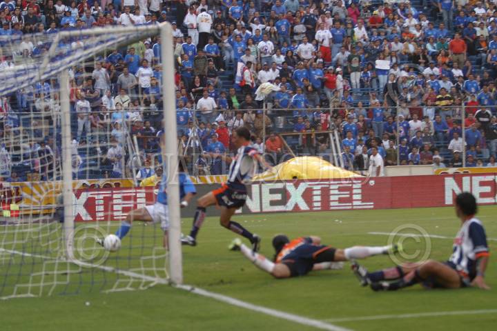 MEXICO, D.F. 29ENERO2005.- La afición de la máquina celeste festeja el triunfo de su equipo sobre los rayados de Monterrey. FOTO: Nelly Salas/CUARTOSCURO.COM