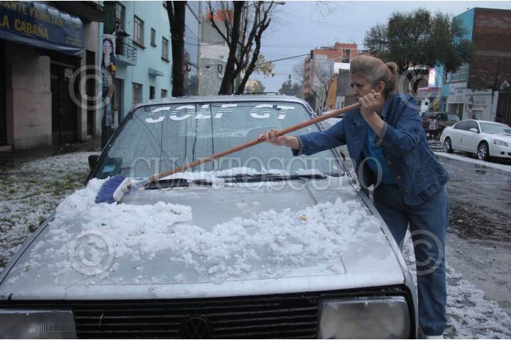 MÉXICO, D.F. 10MARZO2012.- Vecinos de la Col. Doctores salieron a limpiar las calles y sus autos del granizo que se dejo sentir la tarde de hoy al centro de la capital, niños,jovenes y adultos, salieron a disfrutar del fenómeno metereológico que cubrio de blanco varias calles como Dr. Andrade y Dr. Velasco. FOTO: FRANCISCO RODRÍGUEZ /CUARTOSCURO.COM