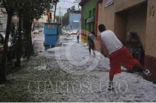 MÉXICO, D.F. 10MARZO2012.- Vecinos de la Col. Doctores salieron a limpiar las calles y sus autos del granizo que se dejo sentir la tarde de hoy al centro de la capital, niños,jovenes y adultos, salieron a disfrutar del fenómeno metereológico que cubrio de blanco varias calles como Dr. Andrade y Dr. Velasco. FOTO: FRANCISCO RODRÍGUEZ /CUARTOSCURO.COM