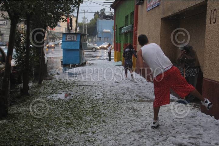 MÉXICO, D.F. 10MARZO2012.- Vecinos de la Col. Doctores salieron a limpiar las calles y sus autos del granizo que se dejo sentir la tarde de hoy al centro de la capital, niños,jovenes y adultos, salieron a disfrutar del fenómeno metereológico que cubrio de blanco varias calles como Dr. Andrade y Dr. Velasco. FOTO: FRANCISCO RODRÍGUEZ /CUARTOSCURO.COM
