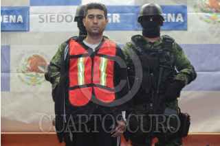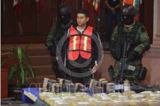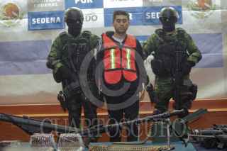 MÉXICO, DF 12MARZO2012.-El lider del Cartel Jalisco Nueva Generación, Erick Valencia Salazar, también conocido como el 85, fué presentado en la SIEDO esta mañana. Es señalado por la PGR y la SEDENA como el sucesor de Ignacio "Nacho" Coronel. "El 85" fué detenido el pasado viernes en Guadalajara en un operativo del Ejército. FOTO: JUAN PABLO ZAMORA /CUARTOSCURO.COM