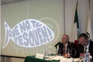 MÉXICO, D.F., 12MARZO2012.- Luis Pazos de la Torre Presidente de la CONDUSEF acompañado de Luis Fabre Pruneda Vicepresidente Técnico de este organismo durante la presentación de la campaña preventiva “Que No Te Pesquen” que se suma a la campaña ‘¡Aguas! Ponte Buzo', de la Asociación de Bancos de México. Los esfuerzos estarán enfocados a la prevención de fraudes en tarjetas de crédito y débito. FOTO: GUILLERMO PEREA /CUARTOSCURO.COM