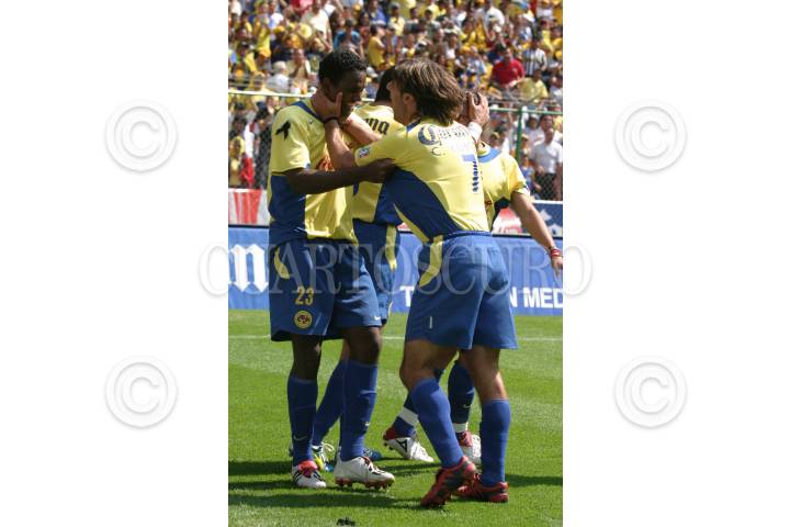 MEXICO, D.F. 30ENERO2005.- Mario Pérez (América), disputó un balón con Héctor Altamirano (Santos) en el partido donde las águilas del América vencieron 4 goles a 2 a Santos Laguna en la jornada 3 del torneo de clausura 2005. FOTO: Iván Stephens/CUARTOSCURO.COM
