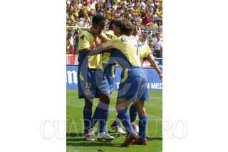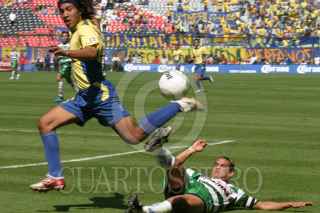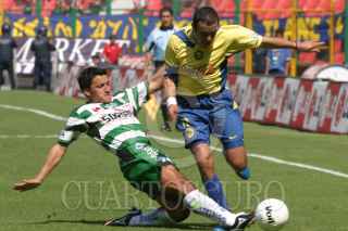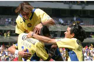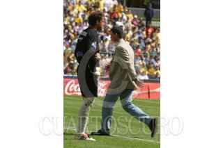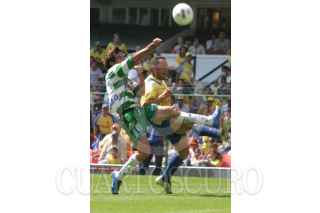 MEXICO, D.F. 30ENERO2005.- Mario Pérez (América), disputó un balón con Héctor Altamirano (Santos) en el partido donde las águilas del América vencieron 4 goles a 2 a Santos Laguna en la jornada 3 del torneo de clausura 2005. FOTO: Iván Stephens/CUARTOSCURO.COM