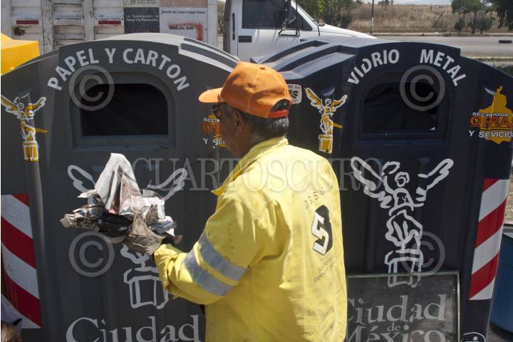 MÉXICO, D.F., 13MARZO2012.- Trabajadores del Gobierno del Distrito Federal y vecinos de la Unidad Habitacional Vicente Guerrero comenzaron a utilizar las "islas de reciclaje de basura" que se instalaron esta mañana en dicho lugar y que son parte del programa de reciclaje en unidades habitacionales implementado por la Procuraduría Social local. FOTO: ISAAC ESQUIVEL /CUARTOSCURO.COM