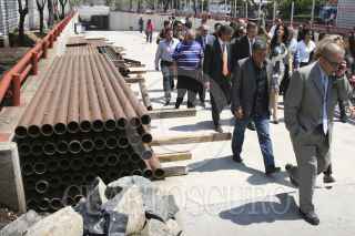 MÉXICO, D.F., 13MARZO2012.- Marcelo Ebrard Casaubon, jefe de gobierno del DF acompañado de su esposa, Rosalinda Bueso y Alfonso Salem Slim, vicepresidente de Inmuebles del Grupo Carso durante un recorrido por la construcción de un paso a desnivel que pasará por debajo del cruce de Ejército Nacional y Ferrocarril de Cuernavaca. FOTO: SAÚL LÓPEZ /CUARTOSCURO.COM