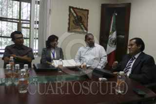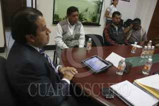 OAXACA, OAXACA, 13MARZO2012.- Los fotoperiodistas y reporteros agredidos por la Policía Municipal de Santa Cruz Xoxocotlán el pasado 6 de marzo, Esteban Marcial del periódico Noticias, Jesús Cruz Porras corresponsal del Semanario Milenio, Alejandro Villafañe del periódico El Imparcial, José Cortés corresponsal de Caden Tres y Jorge A. Pérez Alfonso corresponsal de la Agencia Cuartoscuro y de La Jornada se reunierón con el procurador General de Justicia del Estado, Manuel de Jesús López López quien informó acerca de la investigación que se realiza en torno a la agresión sufrida donde aseguró que la investigación se realizará conforme a la ley y se castigará a quien o quienes resulten responsables. FOTO: ARTURO PÉREZ ALFONSO /CUARTOSCURO.COM