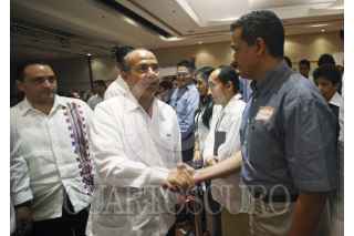 BENITO JUAREZ, QUINTANA ROO, 14MARZO2012.- Felipe Calderón Hinojosa, presidente de México, en compañía de Roberto Borge, gobernador del estado, durante la inauguración de la 5ta Feria Nacional de Empleo Cancún 2012. FOTO: ALFREDO GUERRERO /CUARTOSCURO.COM