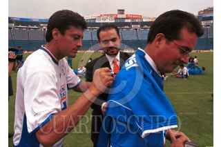 Sergio Almaguer firma autógrafos al término de su entrenamiento en el estadio Azul. FOTO: Pedro Mera/CUARTOSCURO.COM