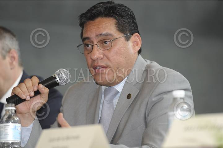 MÉXICO, D.F., 14MARZO2012.- Luis González Placencia, presidente de la CDHDF, durante su participación en la conferencia de prensa "La verdad en el caso Florence Cassez". Cassez es una ciudadana francesa que esta condenada a 60 años de cárcel por el delito de secuestro, sin embargo, podría obtener su libertad gracias a un proyecto presentado por el ministro Arturo Zaldivar, quien alega que la serie de irregularidades durante su detención son motivo suficiente para su liberación inmediata. La ciudadana gala fue aprendida y presentada ante los medios de comunicación en medio de un supuesto, en donde también se detuvo a su pareja sentimental Israel Vallarta, líder de los Zodiacos. El operativo estuvo a cargo del AFI en ese momento dirigida por Genaro García Luna, actual titular de la SSP. FOTO: IVÁN MENDEZ /CUARTOSCURO.COM