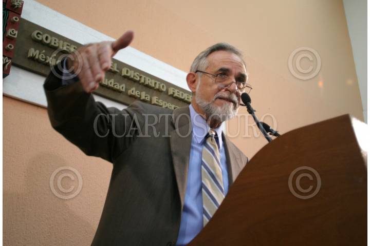 MEXICO, D.F. 31ENERO2005.- Andrés Manuel López Obrador, jefe de gobierno de la ciudad de México, durante la conferencia de prensa que ofrece diariamente a los medios de comunicación en el antiguo edificio del ayuntamiento. FOTO: Nelly Salas/CUARTOSCURO.COM