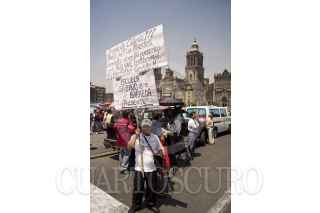 MÉXICO, D.F., 15MARZO2012.- Miles de maestros, provenientes de distintos estados de la república, realizaron un acto de protesta en el zócalo capitalino para exigir al gobierno federal respeto a la educación pública. En la foto Azael Santiago Chepi, secretario general de la Sección 22 y Martín Esparza, líder del sindicato mexicano de electricistas. FOTO: PEDRO ANZA /CUARTOSCURO.COM