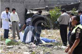 CHIMALHUACAN, ESTADO DE MÉXICO 15MARZO2012.- Un hombre de aproximadamente 50 años, fue ejecutado. Fué encontrado con el rostro vendado con un cinto y las manos atadas con cinta adhesiva. Presentaba dos impactos de arma de fuego y se encontraba descalzo. Posiblemente, según elementos policiacos, puede ser una victima de secuestro. El descubrimiento se dio en la esquina de las calles 3a cerrada de Amatulia y Nayarit, en la colonia Ejidos de San Agustín de este municipio. FOTO: LUIS CARBAYO /CUARTOSCURO.COM