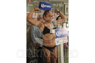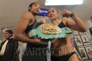 MÉXICO, D.F.16MARZO20212.- La capitalina María Elena "La Explosiva" Villalobos durante el pesaje previo a la pelea que sostendra contra la jamaiquina Alicia Ashley, Campeona Mundial supergallo del Consejo Mundial de Boxeo. FOTO: SAÚL LÓPEZ /CUARTOSCURO.COM
