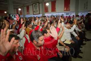 QUERETARO, QUERETARO, 17MARZO2012.- Aspectos de la sesión extraordinaria del Consejo Político Estatal de Unidad del PRI, que sesionará a partir de hoy y hasta el término de la jornada electoral de Julio de 2012. En el marco del acto se tomó protesta a losc candidatos a los cargos federales. FOTO: DEMIAN CHAVEZ/CUARTOSCURO.COM