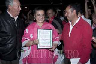 MÉXICO, D.F., 17MARZO2012.- La candidata del PRI a la jefatura del Gobierno del Distrito Federal, Beatriz Paredes Rangel, acudió a un salón al sur de la ciudad a recibir su constancia que la acredita como candidata, al lugar acudieron militantes de todas las delegaciones politicas y sindicalizados. FOTO: FRANCISCO RODRÍGUEZ /CUARTOSCURO.COM