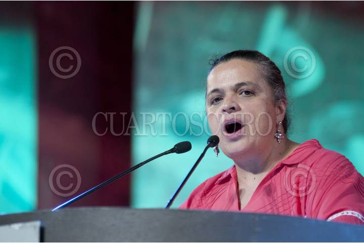MÉXICO, D.F., 17MARZO2012.- La candidata del PRI a la jefatura del Gobierno del Distrito Federal, Beatriz Paredes Rangel, acudió a un salón al sur de la ciudad a recibir su constancia que la acredita como candidata, al lugar acudieron militantes de todas las delegaciones politicas y sindicalizados. FOTO: FRANCISCO RODRÍGUEZ /CUARTOSCURO.COM