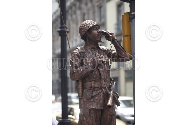 MÉXICO, DF 18 MARZO2012.- Personas conocidas como "estatuas vivientes" se apostan en la calle de Madero. La mayoría luce atuendos de diferentes épocas y oficios. FOTO: JUAN PABLO ZAMORA /CUARTOSCURO.COM