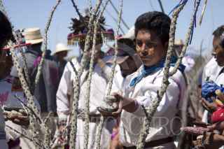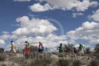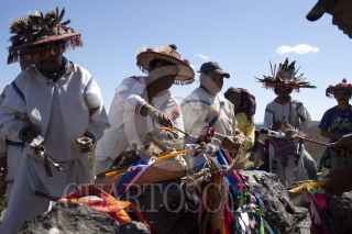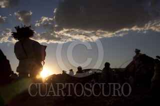 WIRIKUTA, SAN LUIS POTOSÍ, 19MARZO2012.- Los wixaricas creen que en Wirikuta salió por vez primera el sol y habitan las deidades y espíritus ancestrales, por tanto, consideran que cada elemento natural que habita en Wirikuta es igualmente sagrado. Uno de los ritos más sagrados es la peregrinación a Wirikuta. Entre los meses de octubre y marzo, se recrea el caminar de los deidades desde el mar en Haramara (diosa del mar), al este, hasta el lugar en donde salió el sol (Reunax), el actual Cerro Quemado (Leunaxü). FOTO: IVÁN STEPHENS /CUARTOSCURO.COM