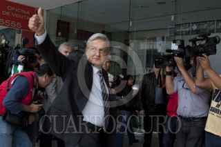 MÉXICO, D.F., 19MARZO2012.- Andrés Manuel López Obrador, candidato de las izquierdas mexicanas a la presidencia de la república, acudió al World Trade Center a un encuentro temático sobre honestidad y combate a la corrupción. FOTO: IVÁN STEPHENS /CUARTOSCURO.COM