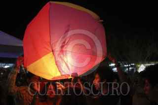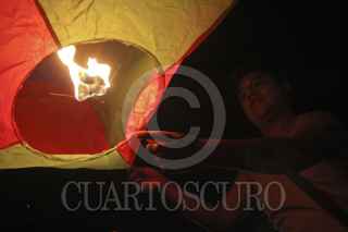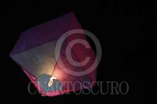PAPANTLA, VERACRUZ, 19MARZO2012.- Algunas personas al termino de su taller de elaboracion de globos de cantoya, por la noche los dejaron ir al cielo para iluminarlo con sus colores el parque tematico de Tajin. FOTO: ENRIQUE ORDÓÑEZ /CUARTOSCURO.COM