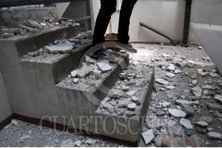 MÉXICO, D.F., 20MARZO2012.- El edificio habitacional ubicado en Av. Juan Escutia #51, colonia Condesa, sufrió varios daños al caerse parte de la pared interior debido al temblor que ocurrió este medio día con una magnitud de 7.6 grados en la escala de Richter. No se reportan daños a personas que habitan el lugar. FOTO: DIEGO SIMÓN SÁNCHEZ /CUARTOSCURO.COM