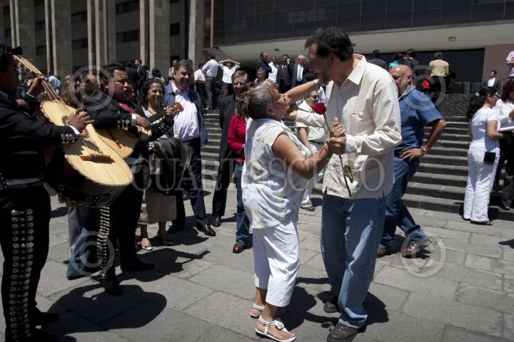 MÉXICO, D.F., 20MARZO2012.- Diputados y visitantes fueron desalojados del recinto legislativo tras el temblor que sacudió la ciudad. Gerardo Fernández Noroña Diputado del PT, fue festejado con mariachis por su cumpleaños sin importar el desalojo por el sismo. FOTO: GUILLERMO PEREA /CUARTOSURO.COM