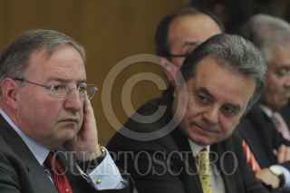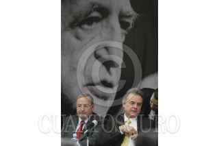 MÉXICO, D.F., 20MARZO2012.- Pedro Joaquín Coldwell, presidente del CEN del PRI, en compañía de Jesús Reyes Heroles Gonzalez Garza, durante el homenaje que le realizaron al ex secretario de gobernación y ex presidente del PRI Jesús Reyes Heroles realizado en las instalaciones del PRI. FOTO: SAÚL LÓPEZ /CUARTOSCURO.COM
