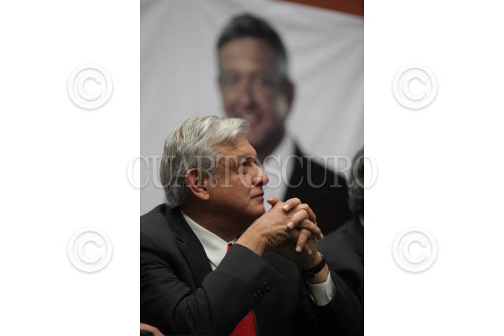 MÉXICO, DF 21MARZO2012.- Andrés Manuel López Obrador, candidato de las Izquierdas, durante el congreso, Por una República Amorosa, al que asitió Laura Esquivel , entre otros intelectuales. FOTO: JUAN PABLO ZAMORA /CUARTOSCURO.COM