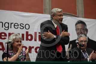 MÉXICO, DF 21MARZO2012.- Andrés Manuel López Obrador, candidato de las Izquierdas, durante el congreso, Por una República Amorosa, al que asitió Laura Esquivel , entre otros intelectuales. FOTO: JUAN PABLO ZAMORA /CUARTOSCURO.COM