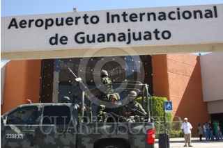 SILAO, GUANAJUATO, 22MARZO2012.- Personal del Ejército mexicano realiza rondines en el Aerpuerto Internacional de Guanajuato como parte del operativo de seguridad implementado con motivo de la visita del papa Benedicto XVI. FOTO: IVÁN STEPHENS /CUARTOSCURO.COM