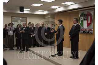 MÉXICO, D.F., 23MARZO2012.- Enrique Peña Nieto, candidato a la Presidencia de la República por el PRI, a su salida de la sede nacional después de la ceremonia realizada con motivo del 18 aniversario luctuoso de Luis Donaldo Colosio. FOTO: FRANCISCO RODRIGUEZ /CUARTOSCURO.COM