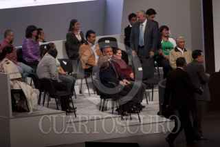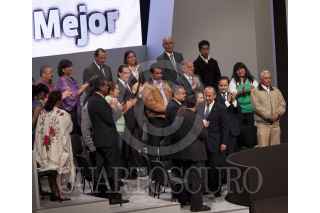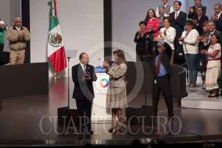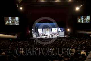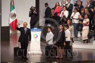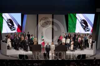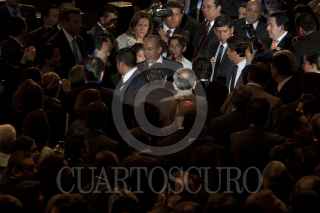 MÉXICO, D.F., 28MARZO2012.- Felipe Calderón Hinojosa Presidente de México, acompañado de su esposa Margarita Zavala y de sus hijos, al termino del informe “Un Gobierno Democrático que Rinde Cuentas” que se realizo en el Auditorio Nacional. FOTO: GUILLERMO PEREA /CUARTOSCURO.COM
